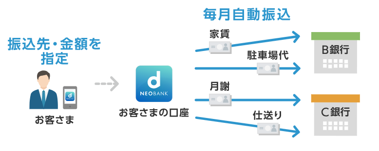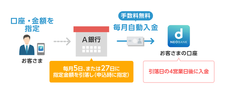 - 他行口座からの自動入金が手数料無料